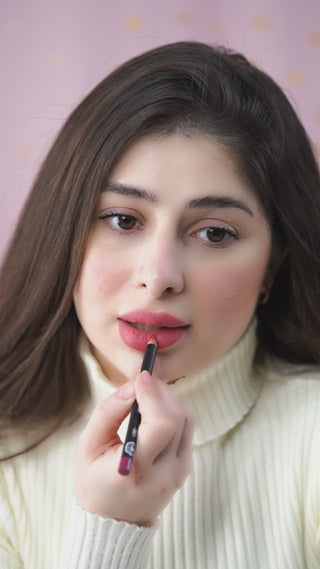 قلم خشبي لملئ الشفاه وتحديدها يوفر لونًا كثيفًا وملمس مطفيا مقاوم للتسرب