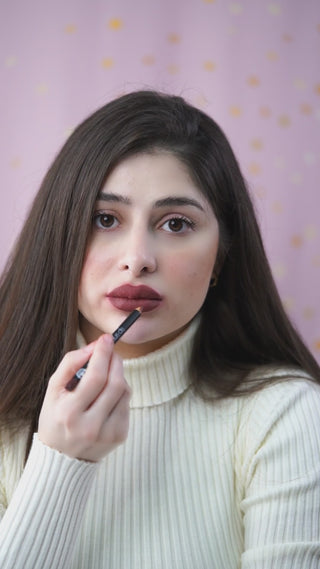 حددي وشكلي شفتيك بلمسة نهائية ناعمة غير لامعة بتمريرة واحدة. مع انزلاق سلس للغاية يشبه البلسم،