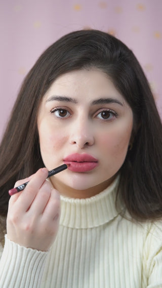 قلم خشبي لملئ الشفاه وتحديدها يوفر لونًا كثيفًا وملمس مطفيا مقاوم للتسرب