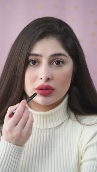 حددي وشكلي شفتيك بلمسة نهائية ناعمة غير لامعة بتمريرة واحدة. مع انزلاق سلس للغاية يشبه البلسم،
