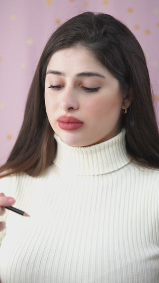قلم خشبي لملئ الشفاه وتحديدها يوفر لونًا كثيفًا وملمس مطفيا مقاوم للتسرب